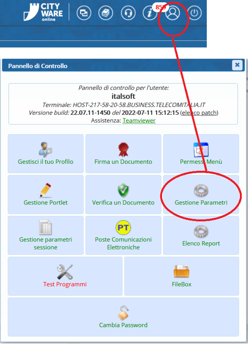 Cliccare in altro a destra sull'icona sotto evidenziata e nel menù che si aprirà fare click su gestione parametri