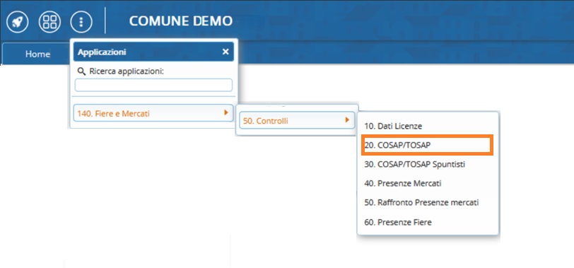 'Fiere e Mercati' > 'Controlli' > 'Cosap/Tosap'