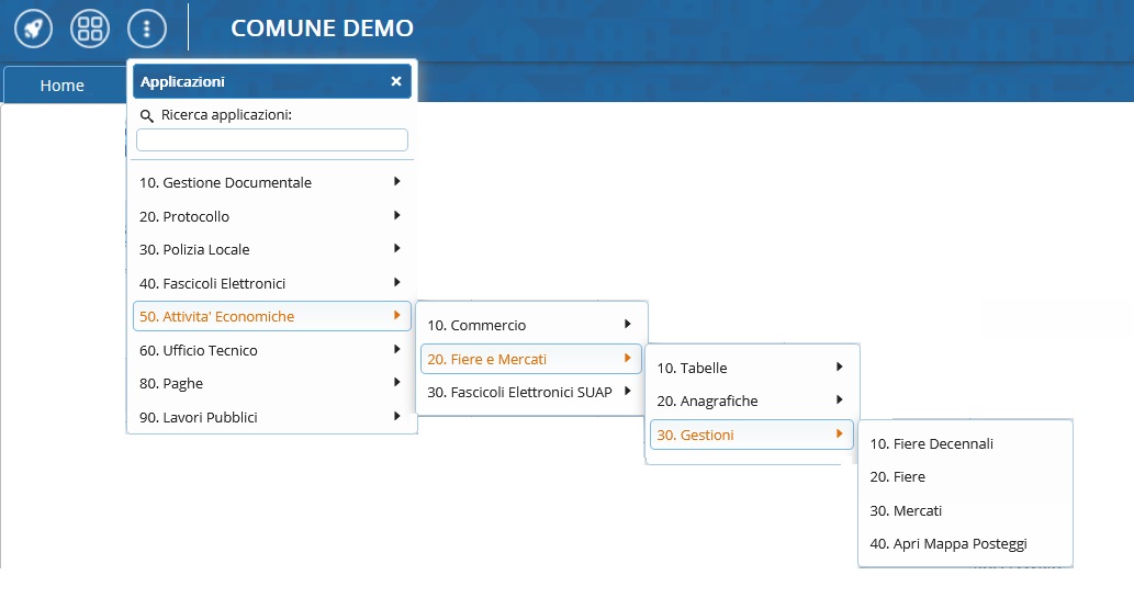 ▶ 'Attività Economiche' ▶ 'Fiere e Mercati' ▶ 'Gestioni'