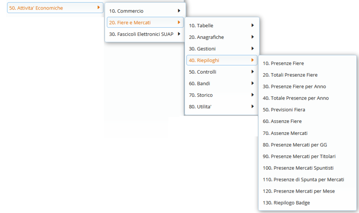 Il menu dei riepiloghi offre la possibilità di controllare, analizzare e rapportare dati riguardanti le fiere ed i mercati.