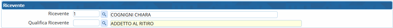 Il campo Ricevente può essere valorizzato sfruttando la lentina se il nominativo è già presente nell'Anagrafica dei Riceventi; se al momento della compilazione era stata aggiunta anche la qualifica, questa verrà valorizzata automaticamente.