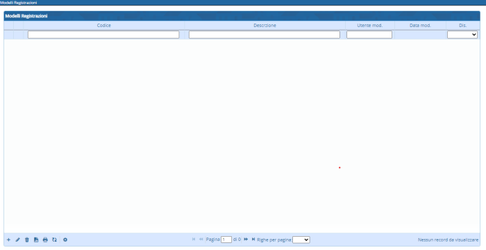 Questa pagina permette di visualizzare una griglia con i modelli registrati.