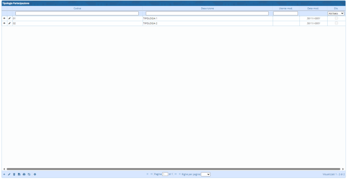 - Nuovo: creare un nuovo elemento da inserire nella tabella