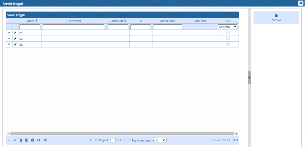 Il programma permette la gestione dei servizi Erogati dalla partecipata