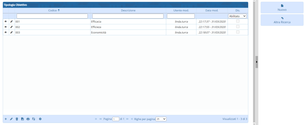 Il programma permette la gestione dell'anagrafica delle tipologie di obiettivo permettendo di inserire , modificare o cancellare delle tipologie di obiettivo