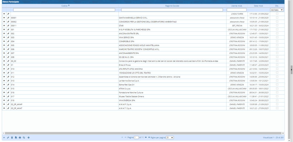 Il programma permette di associare un determinato utente ad una sola partecipata in modo tale che quando l'utente effettui l'accesso potrà lavorare solo su quella partecipata