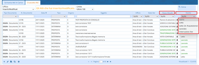 o Passo Attuale dell’iter: Permette di filtrare per uno specifico passo di iter nel quale l’atto è in lavorazione