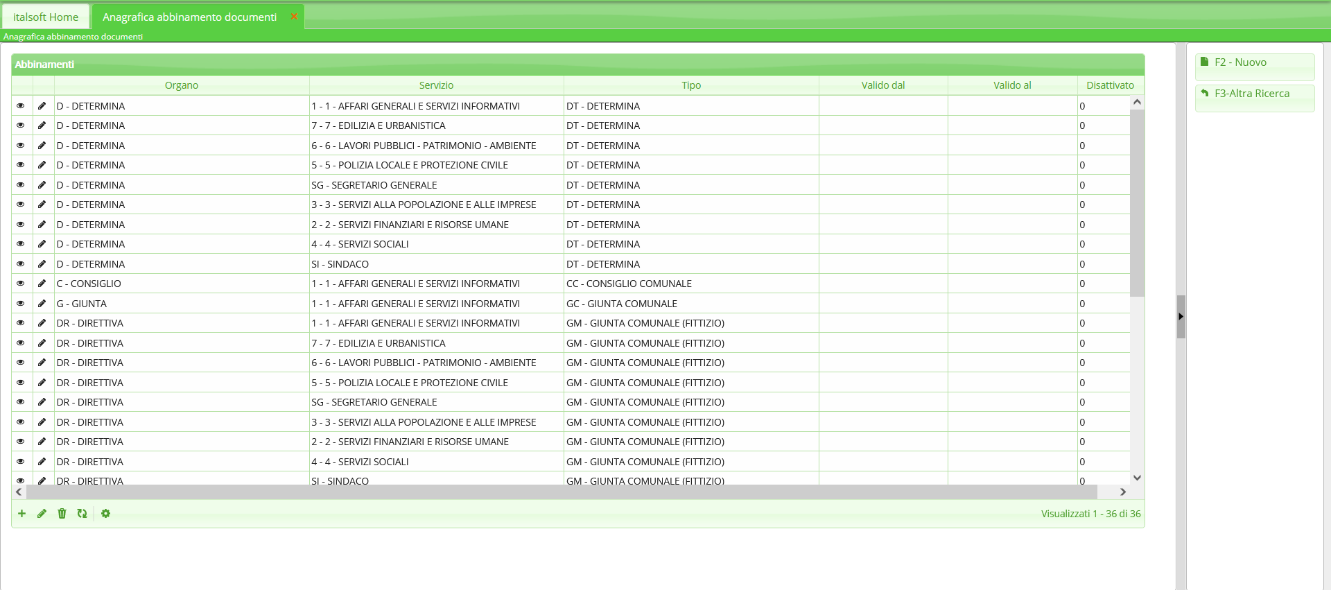 Dalla schermata principale è possibile creare un nuovo record tramite il pulsante “Nuovo”; dalla stessa schermata è possibile impostare un filtro di ricerca.