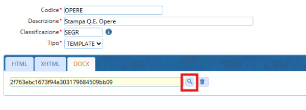 - Nel campo “Codice” inserire il valore “OPERE”;