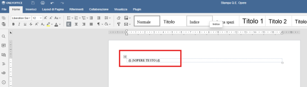 - Completato l'inserimento della variabile, chiudere ONLYOFFICE;