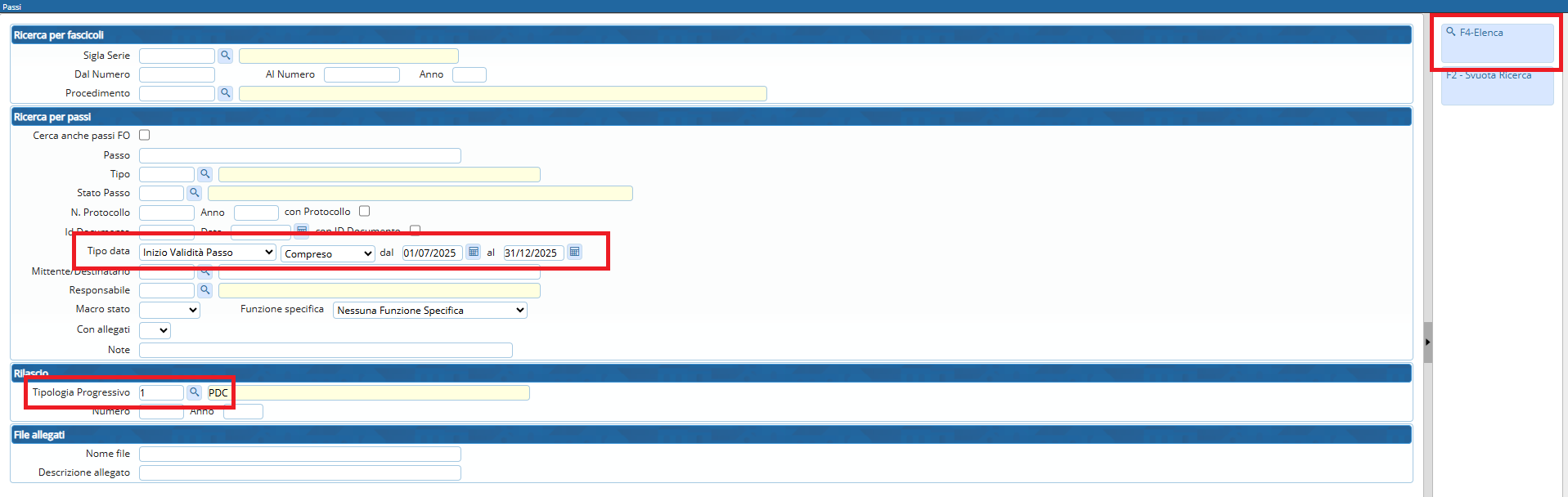 Accedere alla funzione [40. Fascicoli Elettronici - 60. Ricerche - 50. Passi]