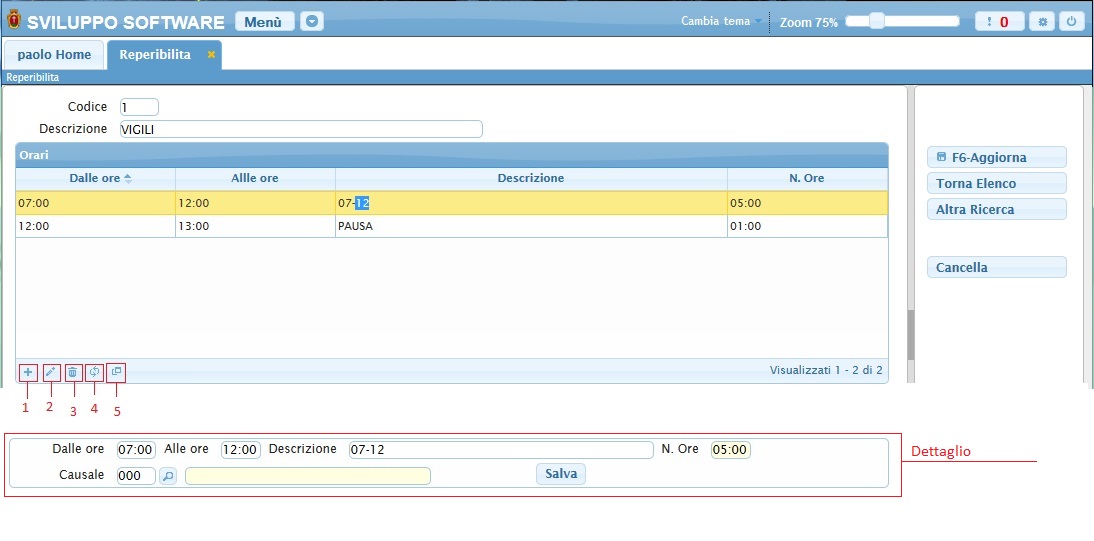 -Modificare i dati della reperibilità cercata e salvarli cliccando il bottone Aggiorna