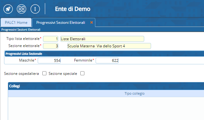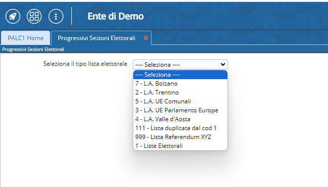 Selezionando una lista è possibile poi, cliccando su elenca, vedere i progressivi. Si ricorda che vengono selezionate anche quelle liste duplicate che possono essere usate per referendum o consultazioni consentite per legge ma che non sono ricomprese nelle tornate elettorali canoniche. Aperta la videata di elenco delle sezioni, entrando in una di esse troverete i progressivi.