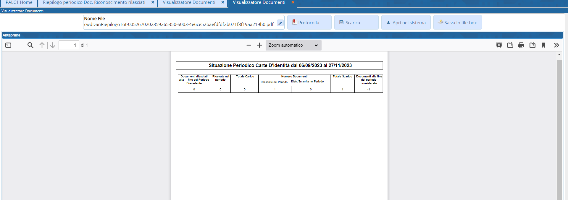 Riepilogo periodico Carte id./Doc riconoscimento rilasciati