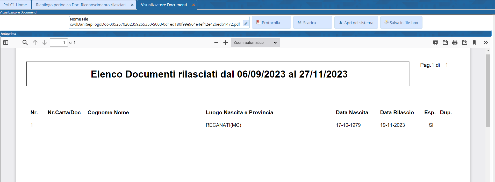 E’ possibile effettuare il riepilogo per tipo di documenti ⇒ Carte di identità cartacee/CIE e Doc. riconoscimento.