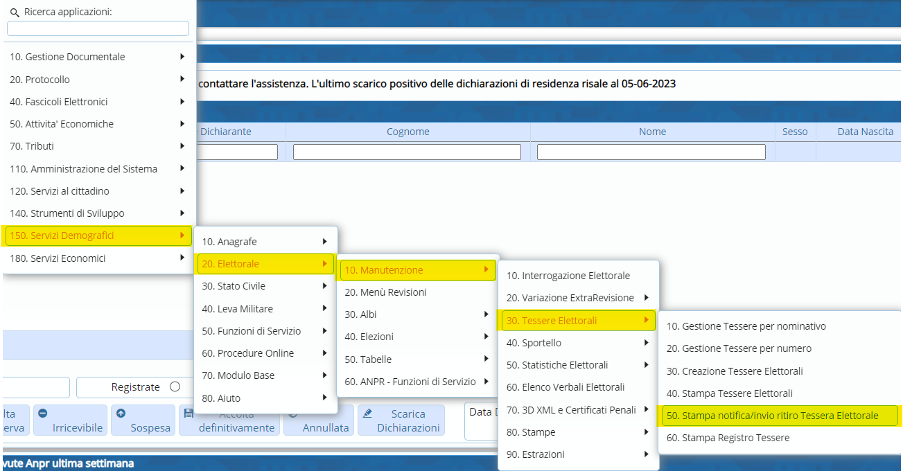 Stampa Notifica/Invio Ritiro Tessere Elettorali