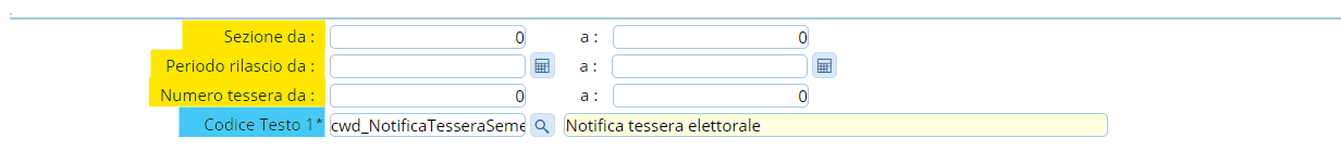 - Numero tessera da ⇒ ricercando il numero attraverso un range di tessere o in modo puntuale