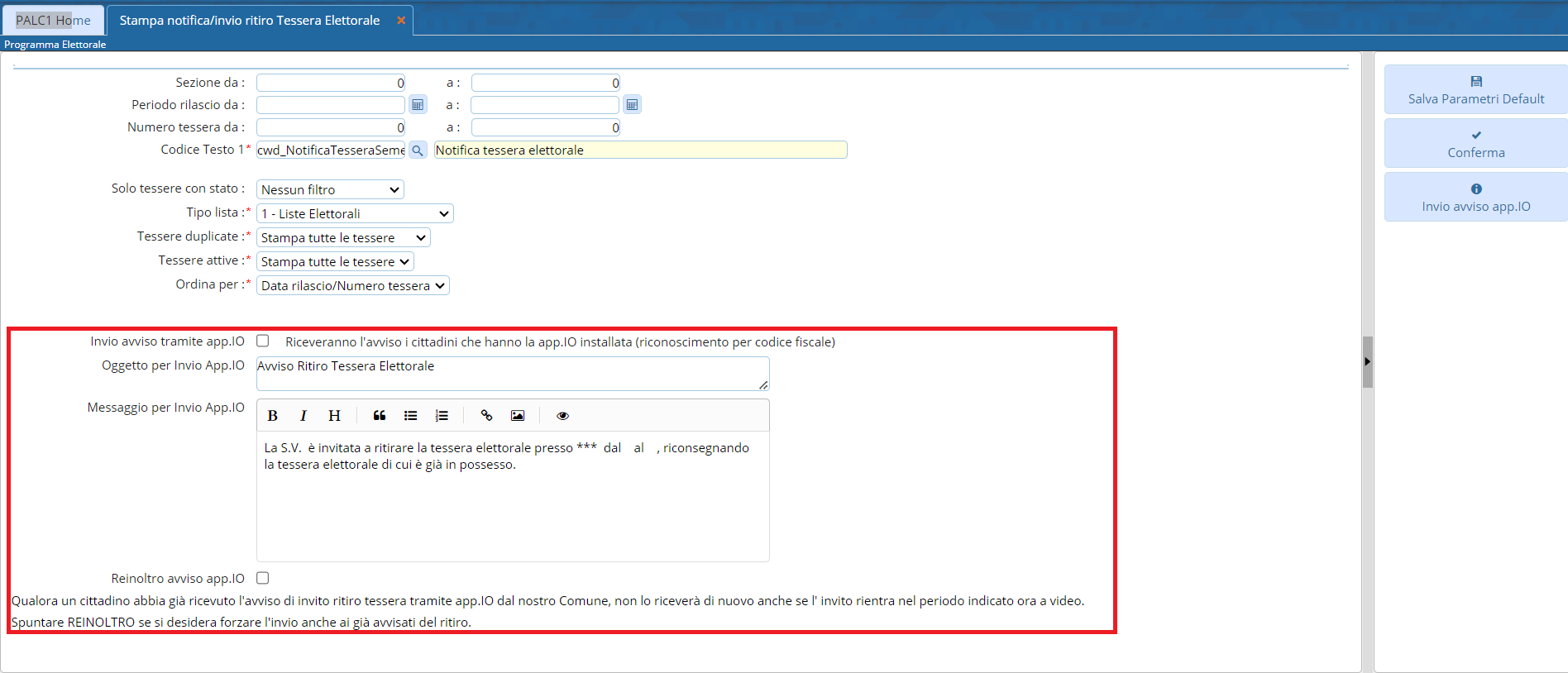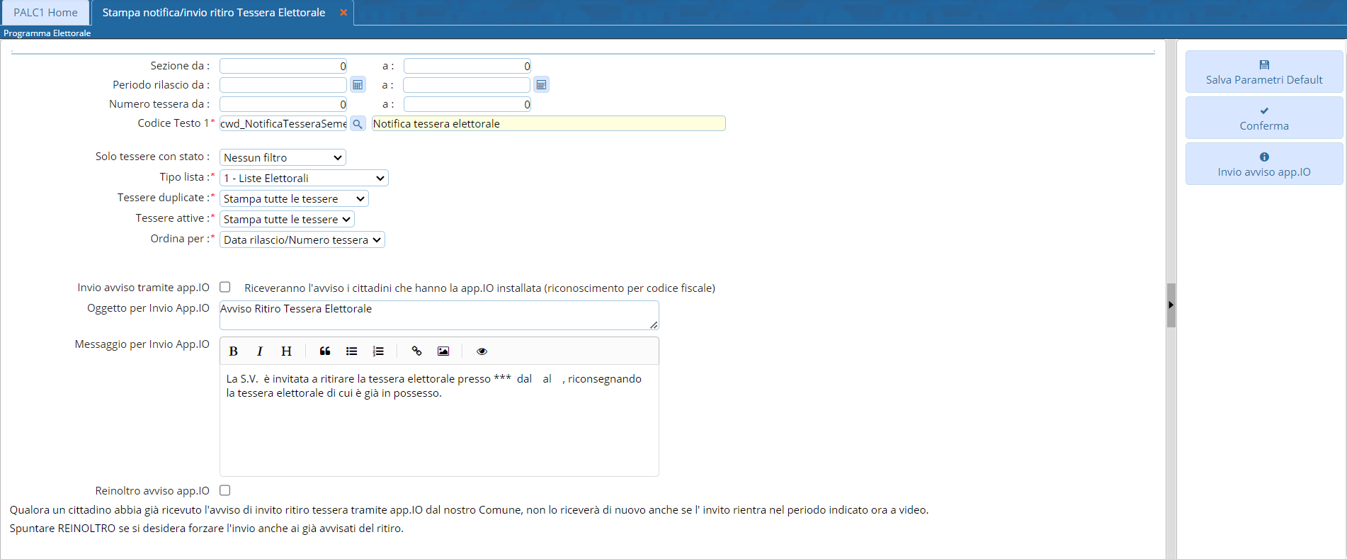Questa voce viene utilizzata per mandare una notifica a tutti quei cittadini che devono ritirare la Tessera Elettorale presso il comune.