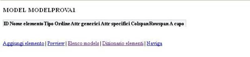 Aggiungi elemento Preview Elenco models Dizionario elementi Naviga.